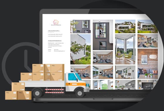 Gjennom våre integrasjoner leveres de ferdige bildene automatisk i kundens meglersystem. I tillegg sender vi galleri med muligheter for nedlasting på e-post.